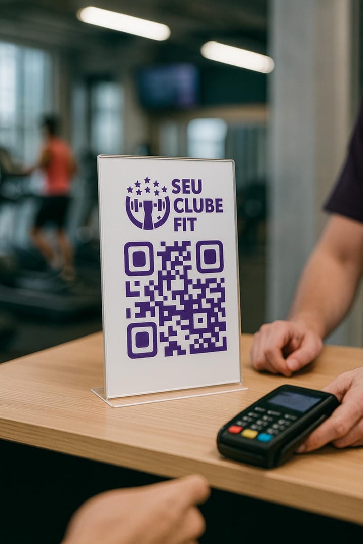 Eles acessam via QR, resgatam ofertas ou compram pelo site dos parceiros e escolhem retirada na academia ou entrega em casa.